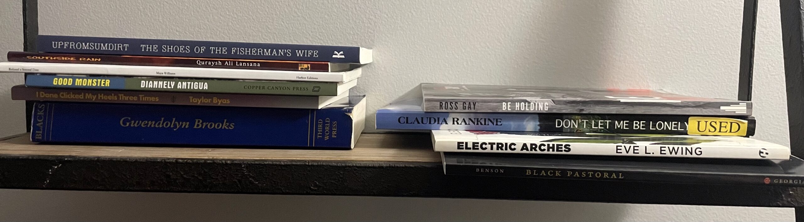 As with all book lists, I left some really, really great stuff off, and also learned that my shelf needs more Black poets. I mean, maybe that’s the thing with book lists. I also thought “I need more Chicago books” and “I need more monster books” when I did those.
